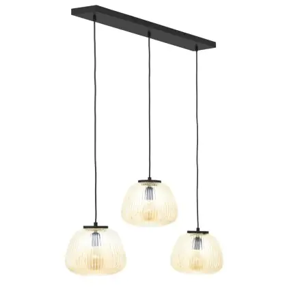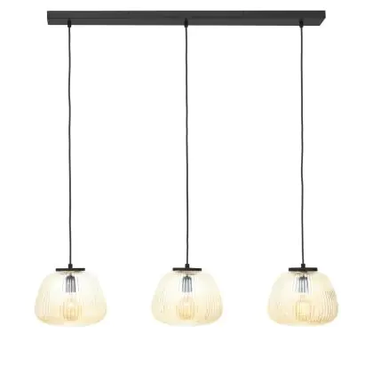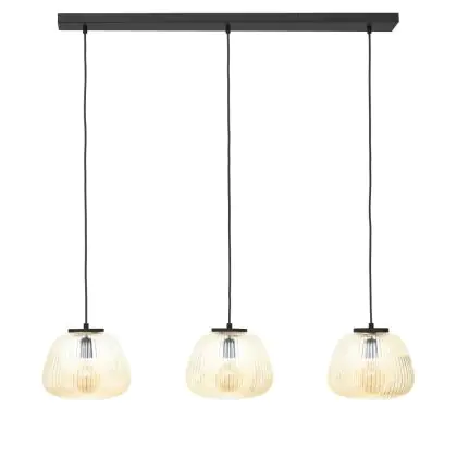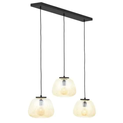 Brilliant Kaizen Luce Pendente Vetro Luce Pendente Metallo Nero Beige | Adatto per 3x E27
