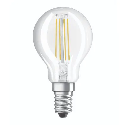 La lampada Osram Parathom Classic LED E14 Sferica Filamento Chiara 4W 470lm - 827 Bianco Molto Caldo | Relax and Active - Sostitutiva 40W è il sostituto perfetto per le tue vecchie lampade 40W con attacco a vite piccolo E14 grazie alla sua tecnologia LED. Passare a LED ti offrirà molti vantaggi!